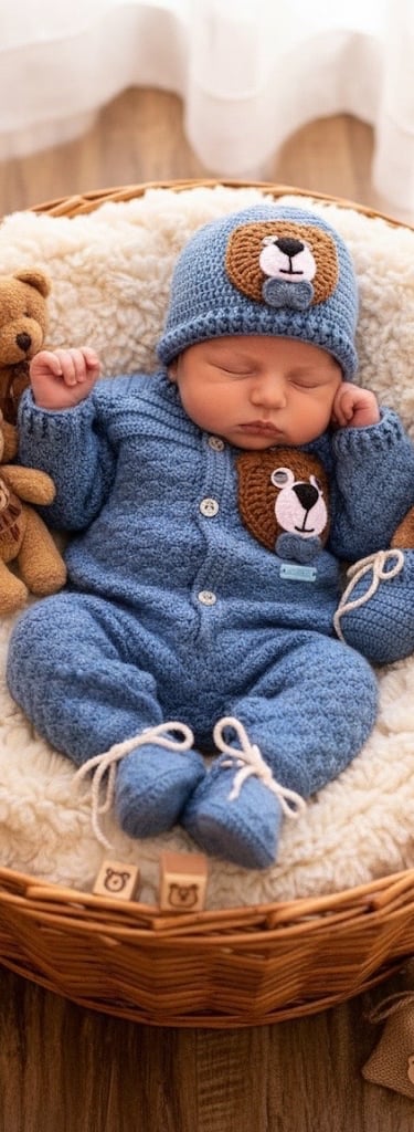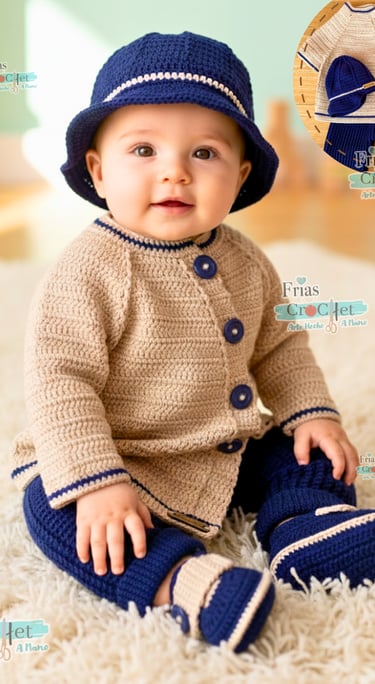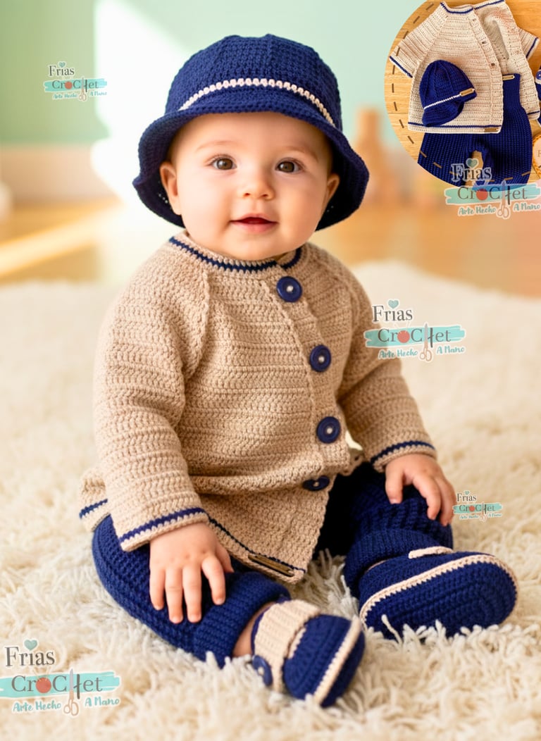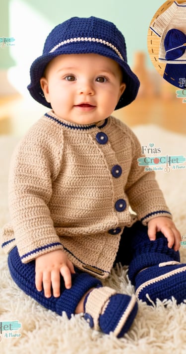 🧵 Incluye: Chaqueta, Pantalón, Gorro y Zapatitos a juego. ✨ Material: Algodón premium.✨