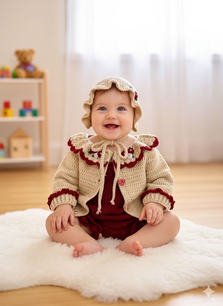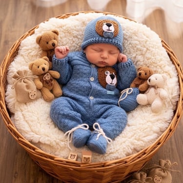 🧶 Incluye: Mameluco, Capucha y Chaqueta. 📸 Uso: El diseño favorito para sesiones de fotos inolvidables.✨ Material: Algodón premium.✨