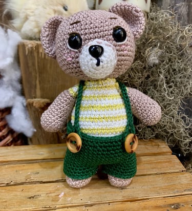 ✨Un osito aventurero con alma tierna✨Con su suéter rayado y tirantes tejidos, es el compañero perfecto para acompañar a tu pequeño en sus juegos y sueños 💭🧸Precio💰RD$2,350.00